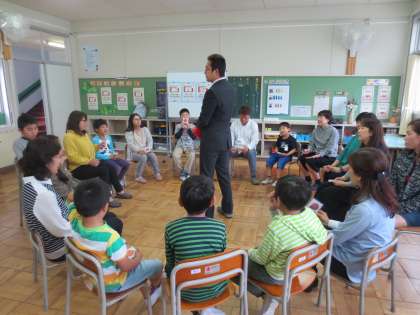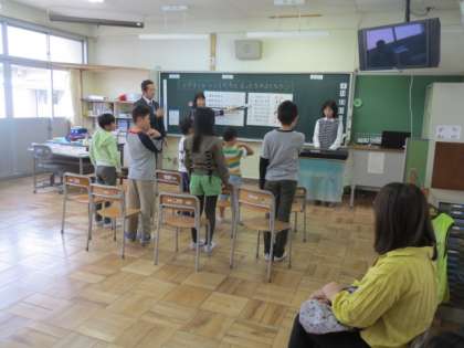 6・7・8組の授業参観では、生活単元学習を行いました。みんなでもっと仲良くなろうと自己紹介や歌やゲームで楽しみました。自己紹介では、みんなのことをもっと知ることができるようにクイズも楽しみました。市内の特別支援学級交流会で歌う「幸せなら手をたたこう」を歌いました。その後、おうちの人も一緒になってフルーツバスケットを楽しみました。最後に星野源の「ドラえもん」をみんなで楽しく歌いました。楽しいひとときであったとともに友達ともより仲良くなりました。