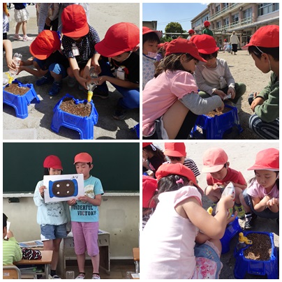 あさがおのたねをうえたよ 1年生 公開日 2018/05/09 更新日 2018/05/09 1年生 ○ 5月9日(水) 今日の5時間目に、2年生と一緒にあさがおの種蒔きをしました。ペアのお兄さん、お姉さんが優しく教えてくれたことで、1年生の子どもたちは笑顔で活動することができました。あさがおが大きく育つことを願って、明日から水やりを一生懸命がんばります。 いいね(0)