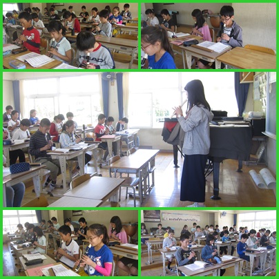 6年1組は、音楽の授業に取り組んでいました。拍数を意識して、リコーダーの練習をしていました。