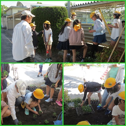 【園芸委員会】夏の花壇の準備 公開日 2018/05/10 更新日 2018/05/10 クラブ・委員会 ○ 5月10日(木) 北小ボランティアの方のご指導を受けながら、園芸委員が7つの花壇に花の苗を植えました。 「お花がいっぱいになってね!」と心を込めて植えていました。 いいね(0)