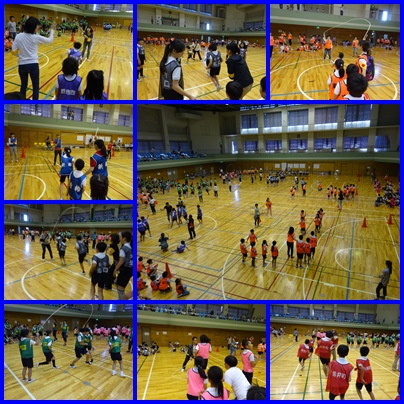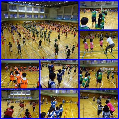 岩倉市総合体育文化センターのアリーナで、平成30年度の北っ子スポーツ大会が開催されました。開会式、準備運動の後、大縄跳び大会が行われました。低学年の部、高学年の部に分かれて、まず予選が行われました。