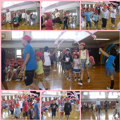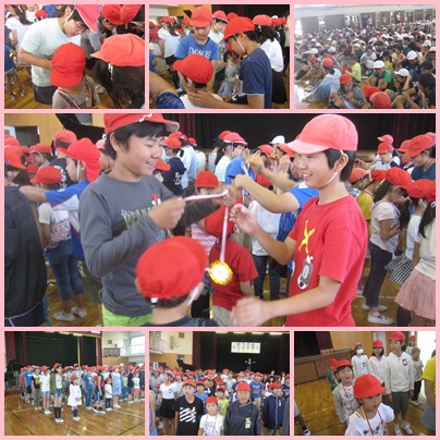 体育館で、ふれあいオープニング集会が行われました。ペアの1年生といっしょに、ゲームをしたり、スローガンの振り付けをしたりしました。○×クイズでは、1年生に一生懸命教えていて、優しいお兄さんお姉さんの姿が見られました。また、一段と仲が深まりました。
