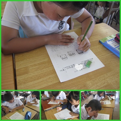 6年3組は、ふれあい週間の感想を書いていました。オープニング集会やペア読書の思い出を、絵日記に表していました。
