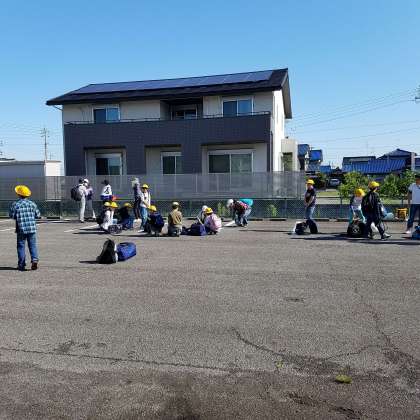 今日から5年生は、野外学習です。集合場所に子どもたちが集まってきています。