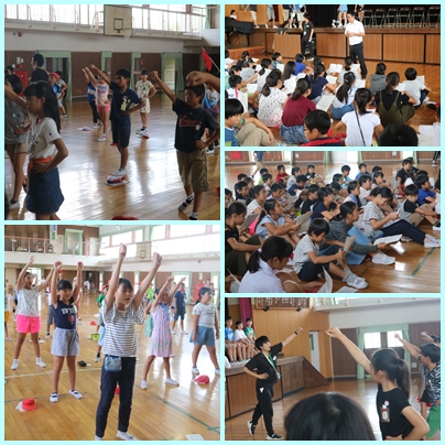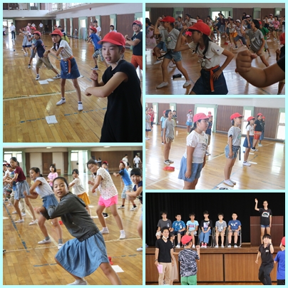 今日は全体で「チャンチャンコール」と「イケイケコール」の振り付けを覚えました。児童たちは、動きを大きくしたり、声をしっかり出したりすることも意識して取り組むことができました。練習後、子どもたちから「夏休みにたくさん練習して、先生たちをびっくりさせたい。」という声があがり、高い意欲を感じました。夏休みにしっかりと練習して2学期を迎えてほしいです。