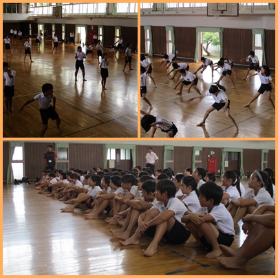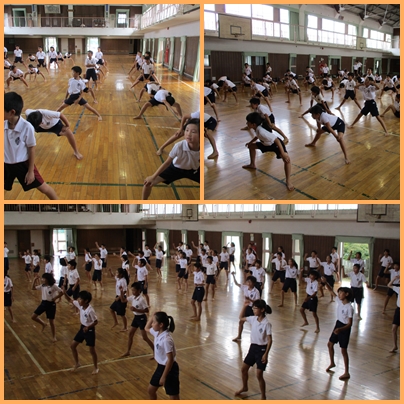 今日は、犬山市で活動している「笑゛」の方に来ていただきソーラン節のご指導をしていただきました。初めは、動きに自信がなかったり、大きく踊れていなかった子もいましたが、「笑゛」の方にご指導していただいた後は、見違えるように堂々と踊っていました。子どもたちは、「もっと大きく踊れるようになりたい」「今日みたいに楽しく踊りたい」と感想を持っていました。運動会に向けて、最後まで練習を頑張っていきたいと思います。