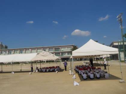テント最高!涼しい! 公開日 2019/09/26 更新日 2019/09/26 今日のできごと ○ 9月26日(木) 昨日張っていただいたテントの中で、担任の話を集中して聞いています。 テントのおかげで、本当に涼しいです!設営にご協力してくださった皆様に、感謝! いいね(0)