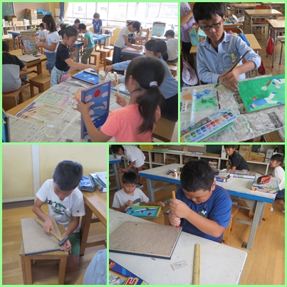4年生 図工(コリントゲーム) 公開日 2019/10/04 更新日 2019/10/04 4年生 ○ 10月4日(金) コリントゲームの土台に、自分のお気に入りの絵を描きました。今日はニスを塗り、枠を釘でつけました。 図工室で集中して作業をしています。 いいね(0)