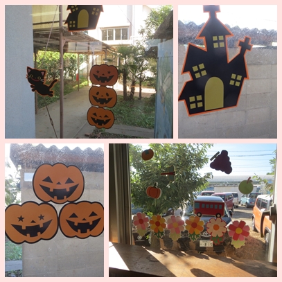 図書館は、ハロウィーンの雰囲気です。