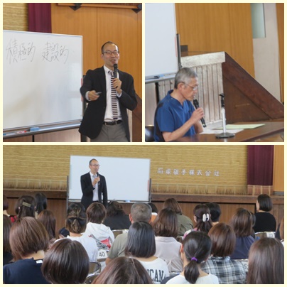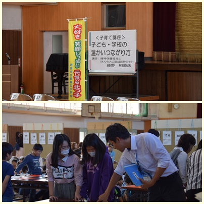 笑顔の伝道師の藤野裕道先生の子育て講座は、ペアワークをたくさん取り入れ、おうちの方同士が交流しながら子育てについて学ぶことができました。皆さんの笑顔がとてもすてきで、会場の雰囲気が和やかでした。