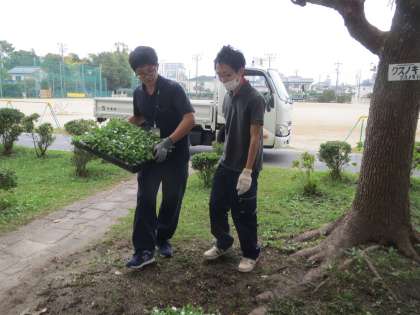 園芸委員会が中心で呼びかけ集まった緑の募金が、きれいな花の苗としてもどってきました。