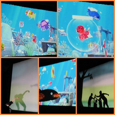 始まる前から、事前に子どもたちの描いた海の生き物の絵がスクリーン上を動き回っていて子どもたちは大興奮していました。