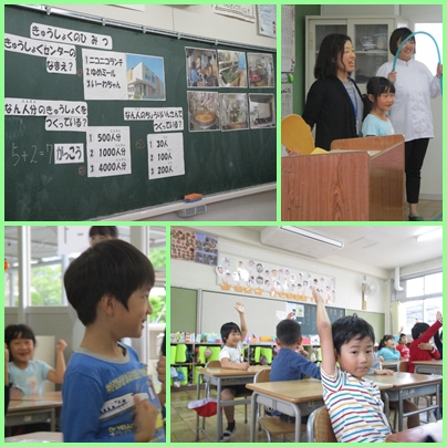 1年生 1−1食指導 公開日 2019/10/24 更新日 2019/10/24 1年生 ○10月24日(木) 本日より1年生で食指導が行われます。 今日は1年1組で行われました。栄養教諭と調理員さんが教室に来てくださったことで子どもたちは、大盛り上がり。給食後の食指導では、「給食センターの秘密」をクイズ形式で出していただき、給食センターのことがよく分かりました。 いいね(0)