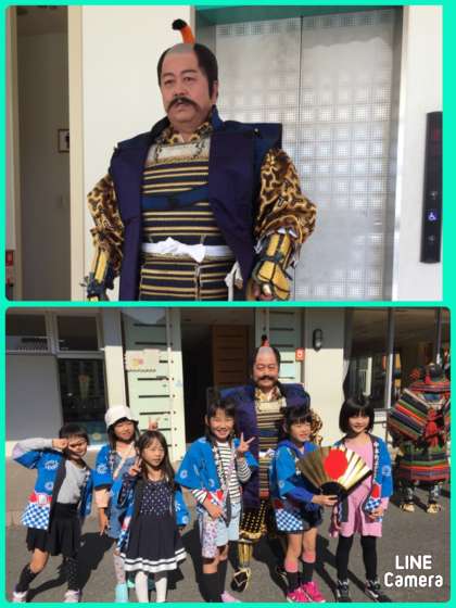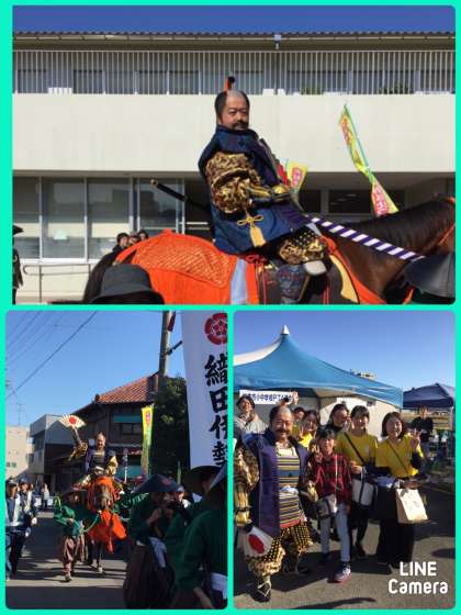 校長先生が岩倉城主「織田伊勢守」になりくすのきの家から岩倉市総合体育文化センターまでパレードをしました。