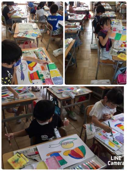 1年生 図工 初めて絵の具を使いました 公開日 2020/07/22 更新日 2020/07/22 1年生 ◯ 7月22日(水) 初めて絵の具を使って色を塗りました。 先生の説明をよく聞いてはみ出さないように丁寧に塗っています。 いいね(0)
