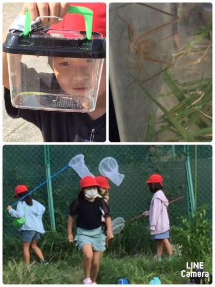 ◯ 10月5日(月) 学年園に出かけ、秋の虫探しをしました。 こおろぎや大きなバッタを見つけ、大喜び!