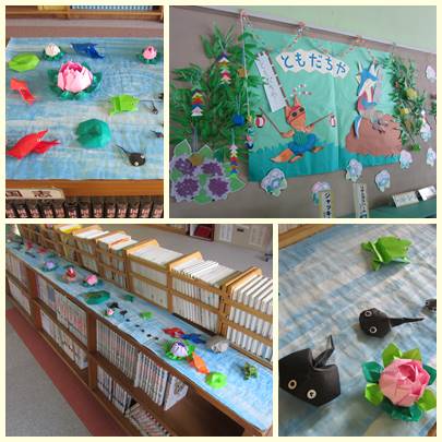 ○ 6月17日(木) 図書館です。かわいらしい飾り付けでいっぱいになりました。