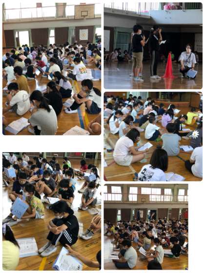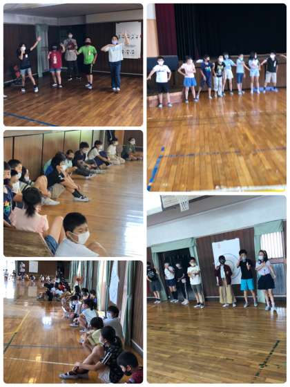 野外学習に向けて、今日は学年でキャンプファイアーで歌う2曲を初めて聞いて実際に歌ってみました。また、キャンプファイアーの隊形になって実際にやってみようの踊りを練習しました。子どもたちは振りつけをしっかり覚えていて、楽しく踊っていました。