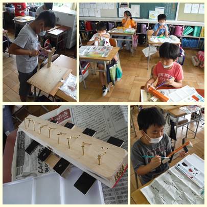 3年生 図工 公開日 2021/06/25 更新日 2021/06/25 今日のできごと ○ 6月25日(金) 「くぎ打ち、トントン!」 くぎを打ち終わった子から色ぬりです。作品のできあがりが楽しみです。 いいね(0)