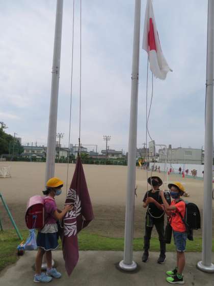 広報委員 旗揚げ 公開日 2021/06/29 更新日 2021/06/29 PTA 6月29日(火) 4年生 代表委員 4年生の代表委員の活動の中で、月曜日、火曜日、木曜日の登校後に、雨の日以外は国旗、校章記揚げを行っています。 雨がやんで良かったですね?? いいね(0)