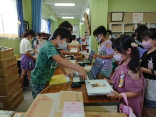 みんなで手際よく返却、貸出の作業をこなしていました。