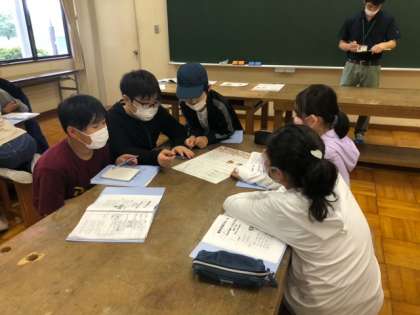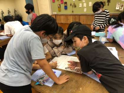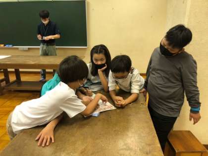 館内謎解きラリーが始まりました。 グループで協力しています。