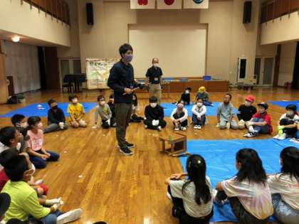 所員の先生方から、のこぎりの使い方について教えていただいています。
