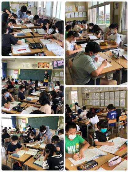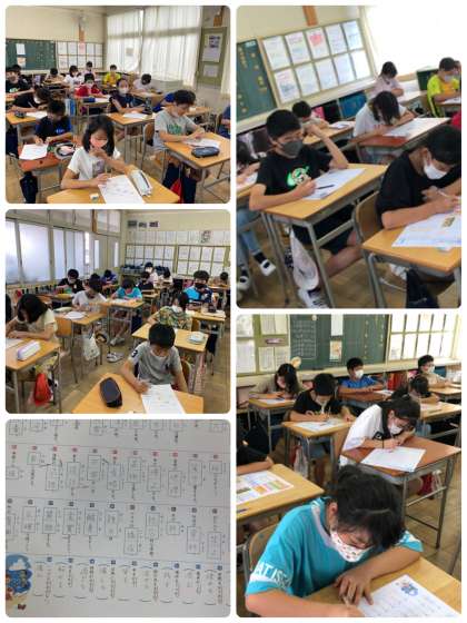5年3組は、漢字テストに取り組んでいました。また、夏休みにしたことをビンゴ形式にしてみんなで楽しく活動することができました。