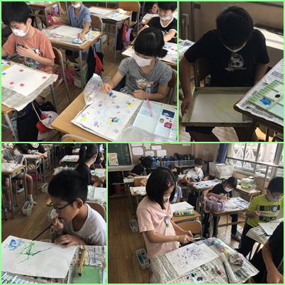用具の使い方を工夫して 公開日 2021/09/07 更新日 2021/09/07 4年生 ○ 9月7日(火) 図画工作では「絵の具でゆめもよう」の練習を行いました。 「どのような模様ができるかな。」 ワクワクしながら歯ブラシ、ビー玉、ストロー、スポンジ、段ボールなどの様々な用具を工夫して使い、紙に模様を描きました。 次回からいよいよ本番!どんな作品になるのか楽しみです。 いいね(0)