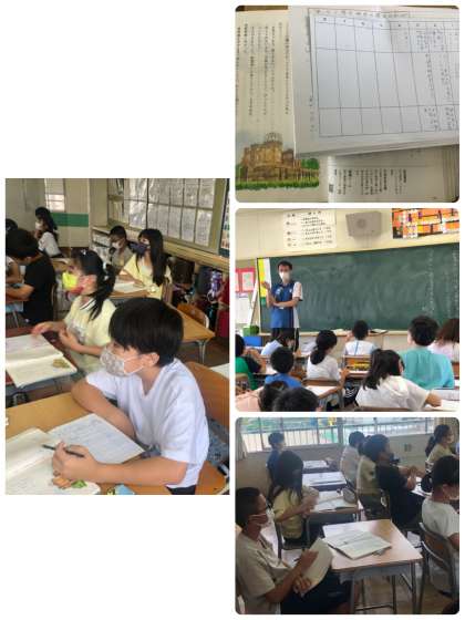 5年2組は、国語でたずねびとを学習しています。主人公の心情の変化を教科書から読み取って、グループや全体で交流したりしていました。