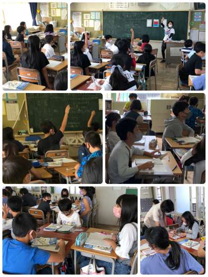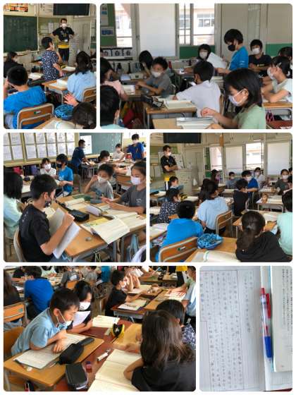 5年2組は国語でたずねびとの学習を終えての感想を書いていました。その後は、思ったことや感じたことをグループで交流し、学びを深めていました。