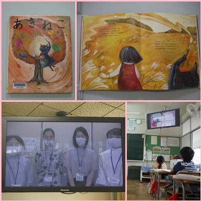 読み聞かせの絵本は「あきねこ」です。キャンバスに描かれる不思議な秋の景色に、心を惹かれていました。