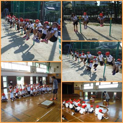 1時間目から外は暑くなってきていますが、子どもたちは元気に体育に取り組んでいます。6年生はソフトボール、5年生はハードル走、2年生は鉄棒です。