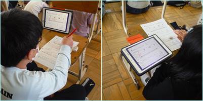 授業の様子 公開日 2022/05/02 更新日 2022/05/02 今日のできごと ○ 5月2日(月) 5年生 1組は音楽室で授業です。音楽記号について、自分で調べてプリントに記入した後、先生がタブレットPCに回答を配信し、書き込んでいく様子を見ながら答え合わせをしていました。 6年生 2組は書写です。とめ、はね、はらいに気を付けて丁寧に書いていました。3組は英語です。先生の発音に耳を傾けながら、スピーキングの練習をしていました。 いいね(0)