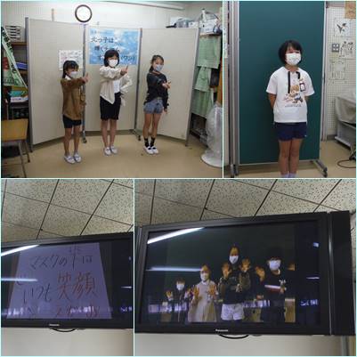 特に、この「ふれあい週間」で、ペアとの名刺交換やペア遊びを行って親交を深めます。今日はそのオープニングセレモニーがTV放送で行われ、児童会から年間スローガンの発表や簡単なゲームでのお楽しみがありました。