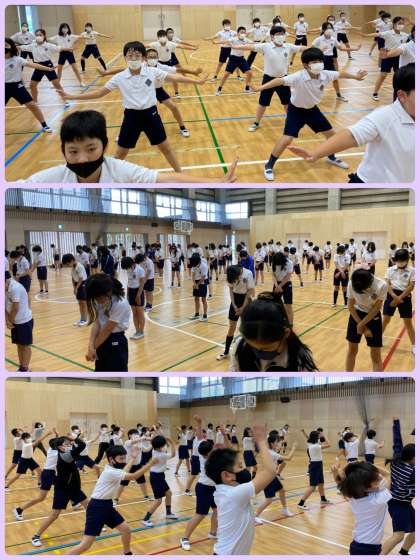 5時間目に運動会の練習をしました。ソーラン節の運動量の多さに子どもたちは驚いていましたが、一つ一つの動きを覚えようと一生懸命頑張っていました。次の練習も頑張って、運動会のよい思い出を作りましょう!