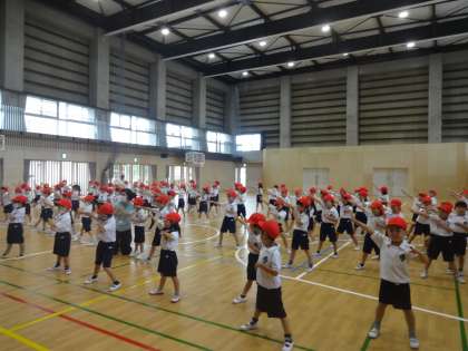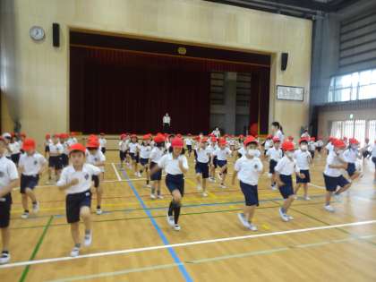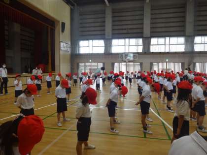 今日から学年での運動会練習が始まりました。音楽に合わせて少しずつ動きを覚えていきました。楽しそうに何度も取り組んでいました。