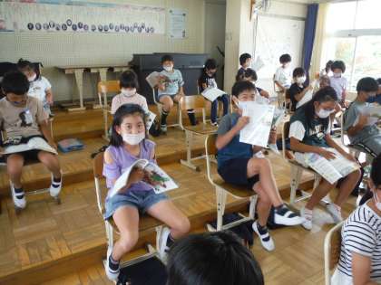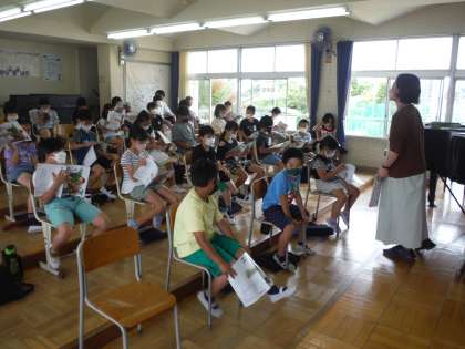 4年生は、「プパポ」という曲を歌っていました。音楽が流れると自然に体が動きます。