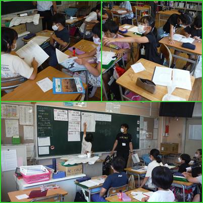 4年生 算数 公開日 2022/06/07 更新日 2022/06/07 4年生 〇 6月7日(火) 方眼紙に書かれたいくつかの直線を見ながら、平行や垂直の関係にある直線を見つけていました。ペアで確認したり、前に出て説明をしたり、友達とのかかわりを大切にしながら算数に取り組んでいました。 いいね(0)