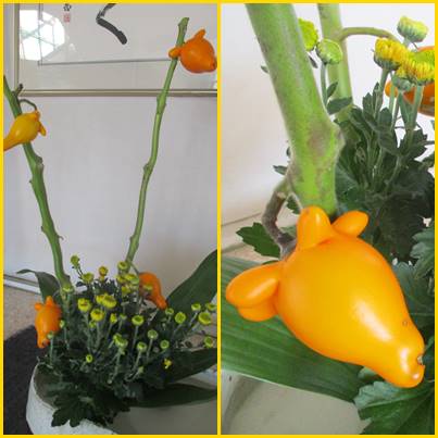 玄関の生け花 公開日 2022/10/26 更新日 2022/10/26 今日のできごと ○ 10月26日(水) 玄関の生け花です。ツノナスがまるでキリンのように、菊の合間から顔を出しています。 いいね(0)