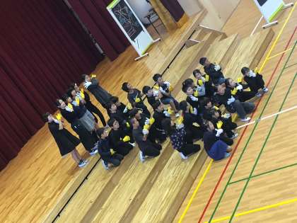 星の世界を黄色う手袋を使って表現してくれました。背中のハートも可愛かったです