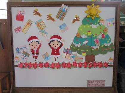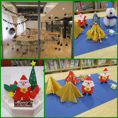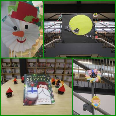 図書ボラさんによる校内掲示物が変わりました。クリスマスバージョンです。あちこちにサンタさんがいっぱい!いよいよ冬がやってきます。