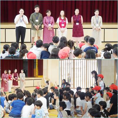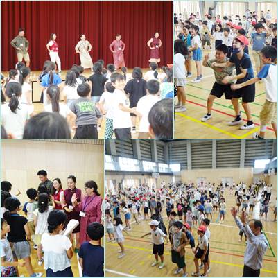 モンゴルからみえた先生方とふれあいタイム! 公開日 2023/06/21 更新日 2023/06/21 今日のできごと 長放課に、体育館でモンゴルの民族衣装を着た、モンゴルの先生方とふれあいました。 最初は、質問タイム! モンゴルの小学校は5年生までしかないことが分かりました。 続いて、モンゴルの音楽に合わせて、みんなで踊りました。 あっという間の長放課、あっという間の3日間でしたね。 いいね(0)