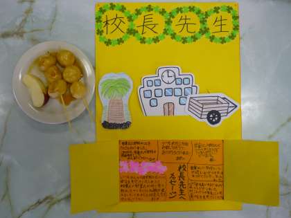 卒業期が近くなってきました。在校生による”卒業生を送る会”の計画・準備や卒業に向けた様々な取り組みがされつつあります。そんな中で、今週は6年生の4つの学級で順にお別れ会食が進められます。先生方や給食の方々にも一生懸命作った作品と真心込めて書いたメッセージを贈ってくれます。今日は校長室にも届きました。おいしかったです!嬉しかったです!!ありがとう!!!