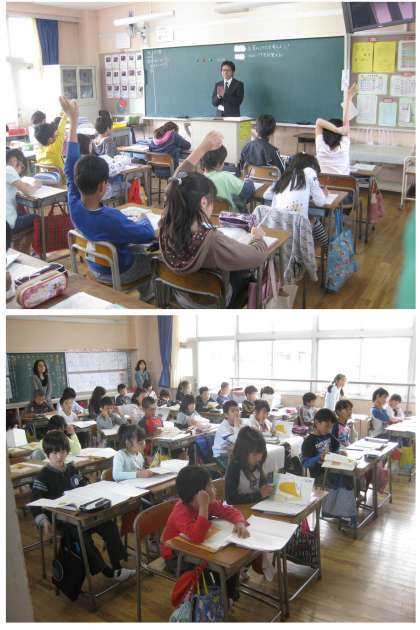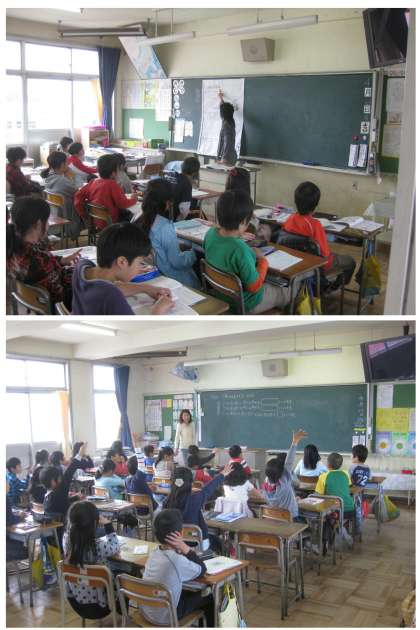 4年生初めての授業参観では,算数の角の勉強やわり算の勉強,国語の勉強の様子を見てもらいました。まっすぐピンと挙がった手から,高学年の仲間入りをしたというやる気が感じられます。