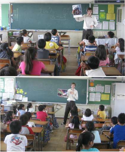 国際交流員のデレック先生が来てくださって、各学級で1時間ずつ国際交流の授業をしてもらいました。カナダ生まれという先生の自己紹介に始まり、カナダの自然や,くらしのお話など,写真を見せてもらいながらいろいろなお話を聞くことができました。休み時間にドッジボールをしたり,給食を一緒に食べたりして楽しいひとときを過ごしました。