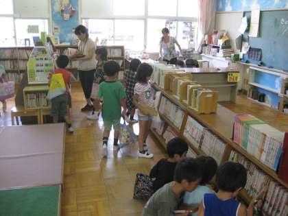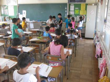 子どもたちは,教室で日誌の答え合わせをしたり,応募作品を提出したり,図書館の本を交換したりしました。休み中の生活についての約束を守り,命を大切に残りの休みを過ごしましょう。