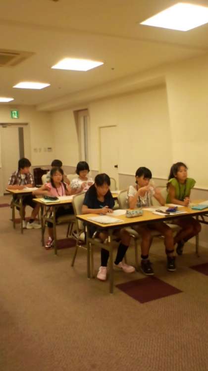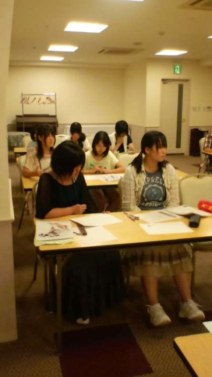 夕食後、学習会を行っています。平和へのメッセージの原案作りをしています。