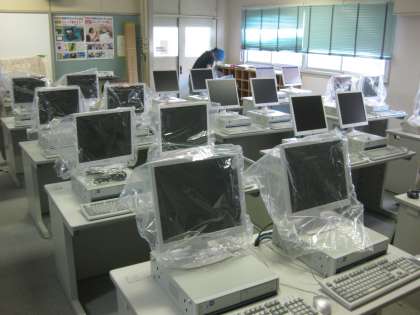 先週末から今週にかけて,コンピューター室や職員室など校内のコンピューターが新しいものにかわりました。2学期からは新しいコンピューターを使って勉強することができます。