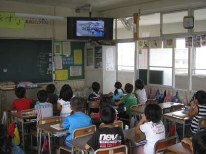 明日の避難訓練に向けて,DVD「津波からにげる」を教室で視聴しました。東日本大震災の時に実際にあった話を元にしたアニメーションで,すばやい避難がいかに大切かがよくわかりました。